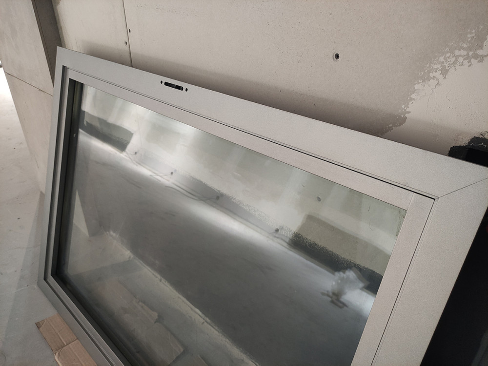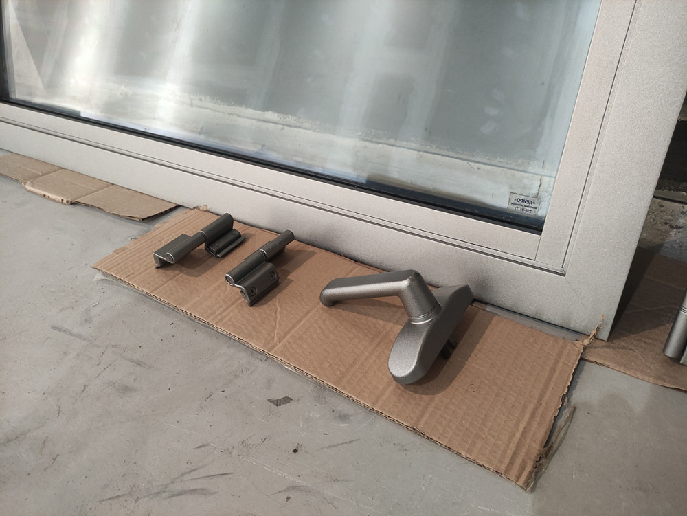 Покраска алюминиевых окон эмалью металлик Ral 9007.
